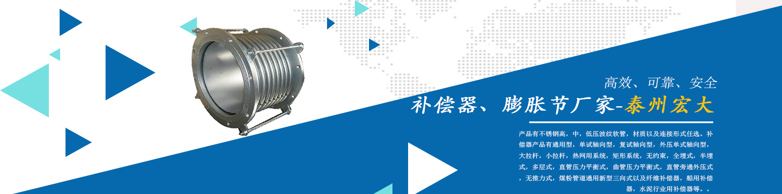 泰州市宏大機(jī)械設(shè)備有限公司是一個(gè)企業(yè)內(nèi)部管理嚴(yán)謹(jǐn),工作作風(fēng)穩(wěn)健,職工素質(zhì)水平較高,經(jīng)濟(jì)實(shí)力雄厚,產(chǎn)品質(zhì)量放心,外部形象良好的企業(yè)。本公司專業(yè)從事補(bǔ)償器廠家,膨脹節(jié)廠家,膨脹節(jié)補(bǔ)償器,其中有不銹鋼高,中,低壓波紋軟管,材質(zhì)以及連接形式任選。補(bǔ)償器產(chǎn)品有通用型,單試軸向型,復(fù)試軸向型,外壓?jiǎn)问捷S向型,大拉桿,小拉桿,熱網(wǎng)用系統(tǒng),矩形系統(tǒng),無(wú)約束,全埋式,半埋式,多層式,直管壓力平衡式,曲管壓力平衡…...